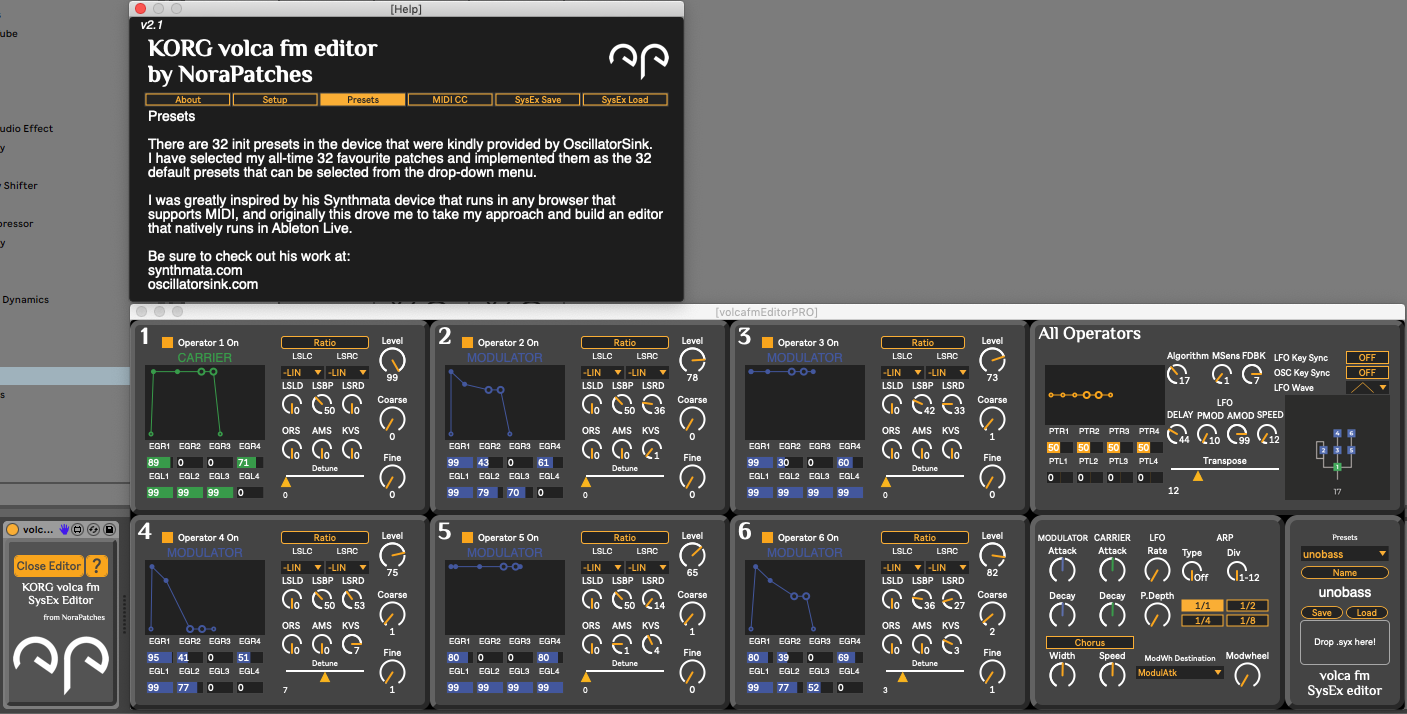 This is a Max 4 Live MIDI effect that should be placed before External Instrument on a MIDI Track in Ableton Live. The device sends out MIDI CC and MIDI SysEx messages to control the parameters on the synthesiser.