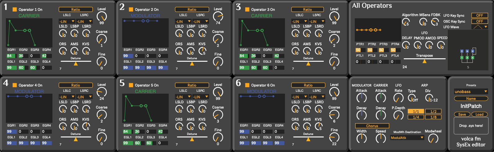 There device requires a custom firmware for the volca fm, v1.09 by reddituser pajen.
